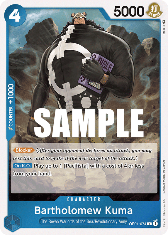 [Bloqueador] (Después de que tu oponente declare un ataque, puedes descansar esta carta para convertirla en el nuevo objetivo del ataque.)[Al K.O.] Juega hasta 1 [Pacifista] con un costo de 4 o menos de tu mano.