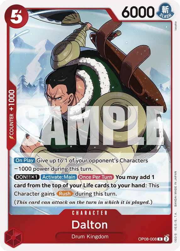 [On Play] Da hasta 1 de tu oponenteLos personajes de ?1000 de potencia durante este turno.[ ¡¡DON!! X1] [Activar: Main] [Una vez por turno] Puedes añadir 1 carta de la parte superior de tus cartas de vida a tu mano: Este personaje gana [Rush] durante este turno.( Esta carta puede atacar en el turno en el que se juega.)