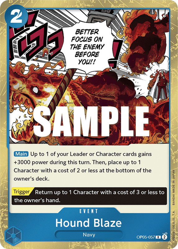 [Main] Hasta 1 de tus cartas de líder o personaje gana +3000 de poder durante este turno. Entonces,Coloque hasta 1 personaje con un costo de 2 o menos en la parte inferior de la baraja del propietario. [Trigger] Devuelve hasta 1 carácter, que cuesta 3 o menos, al maestro.
