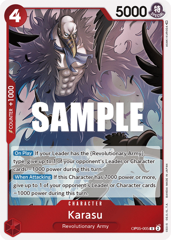 [On Play] Si tu líder tiene el {ReEjército evolutivo} tipo, da hasta 1 de las cartas de Líder o Personaje de tu oponente -1000 de poder durante este turno.[ Al atacar] Si este personaje tiene 7000 de poder o más, da hasta 1 de las cartas de líder o personaje de tu oponente -1000 de poder durante este turno.