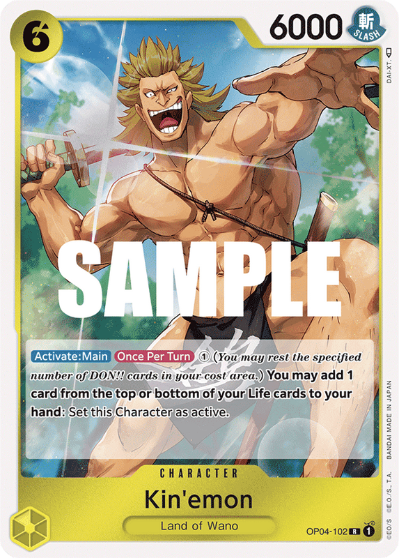 [Activar: Main] [Una vez por turno] ? (¡Puedes descansar el número especificado de DON! Cartas en su área de costos.) Puedes añadir 1 carta de la parte superior o inferior de tus cartas de vida a tu mano: Establece este personaje como activo.