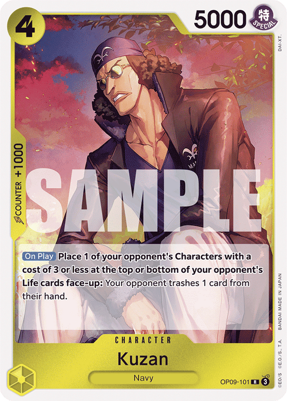 [On Play] Coloca 1 de los personajes de tu oponente con un coSt de 3 o menos en la parte superior o inferior de las cartas de vida de tu oponente boca arriba: Tu oponente tira 1 carta de su mano.