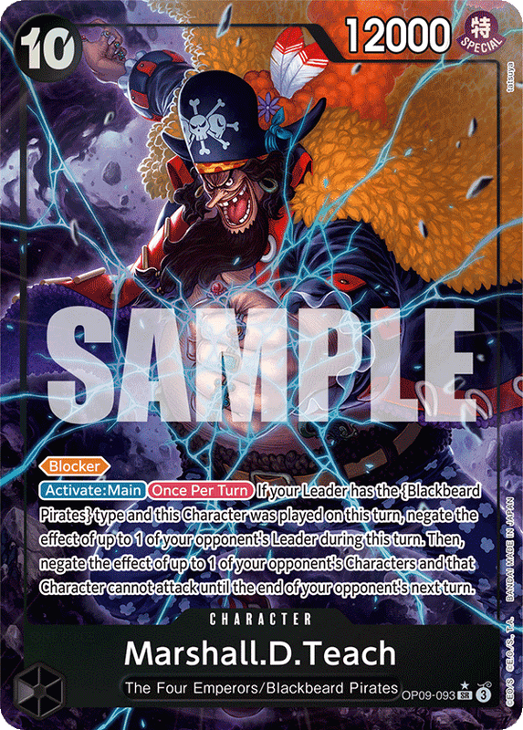 [Blocker][Activar: Main] [Una Vez Por TUrna] Si tu líder tiene el tipo {Piratas de Barbanegra} y este personaje se jugó en este turno, niega el efecto de hasta 1 del líder de tu oponente durante este turno. Luego, niega el efecto de hasta 1 de los personajes de tu oponente y ese personaje cNo ataques hasta el final del siguiente turno de tu oponente.