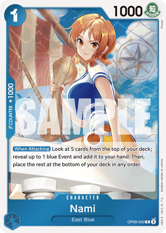 [Cuando Ataques] Mira 5 cartas desde la parte superior de tu baraja; revela hasta 1 evento azul y añádelo a tu mano. Luego, coloque el resto en la parte inferior de su cubierta en cualquier orden.