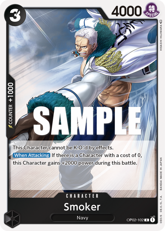 Este personaje no puede ser noqueado por los efectos.[ Al atacarG] Si hay un personaje con un costo de 0, este personaje gana +2000 de poder durante esta batalla.