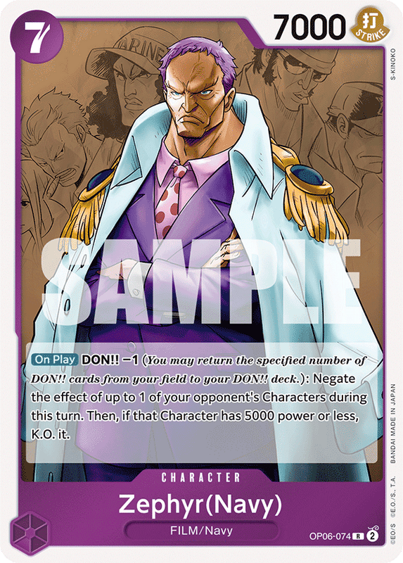 [On Play] ¡¡DON!! ?1 (¡Puede devolver el número especificado de DON! ¡¡Cartas de tu campo a tu DON!! Mazo.): Niega el efecto de hasta 1 de los personajes de tu oponente durante este turno.Entonces, si ese personaje tiene 5000 de potencia o menos, noquea.