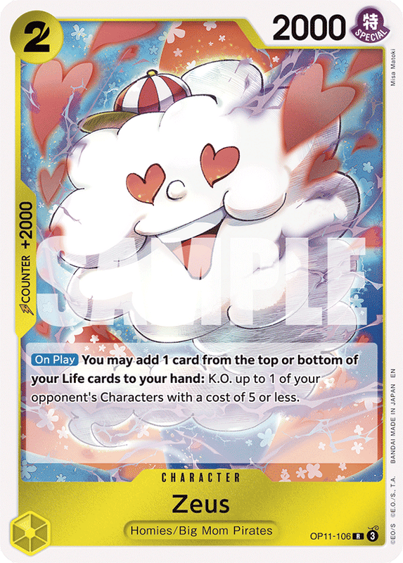 [On Play] Puedes añadir 1 carta de la parte superior o inferior de tus cartas de Vida a tu mano: KO hasta 1 de los Personajes de tu adversario con un coste de 5 o menos.